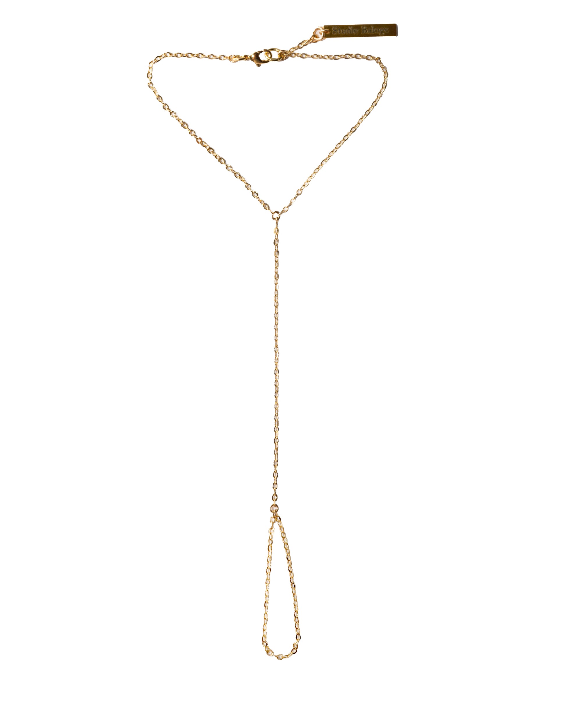 The Kyma Hand Harness is a quiet gesture of elegance—light as breath, deliberate as touch. Designed with a fine dainty chain, it traces from finger to wrist with a subtle shimmer that feels more like skin than metal.