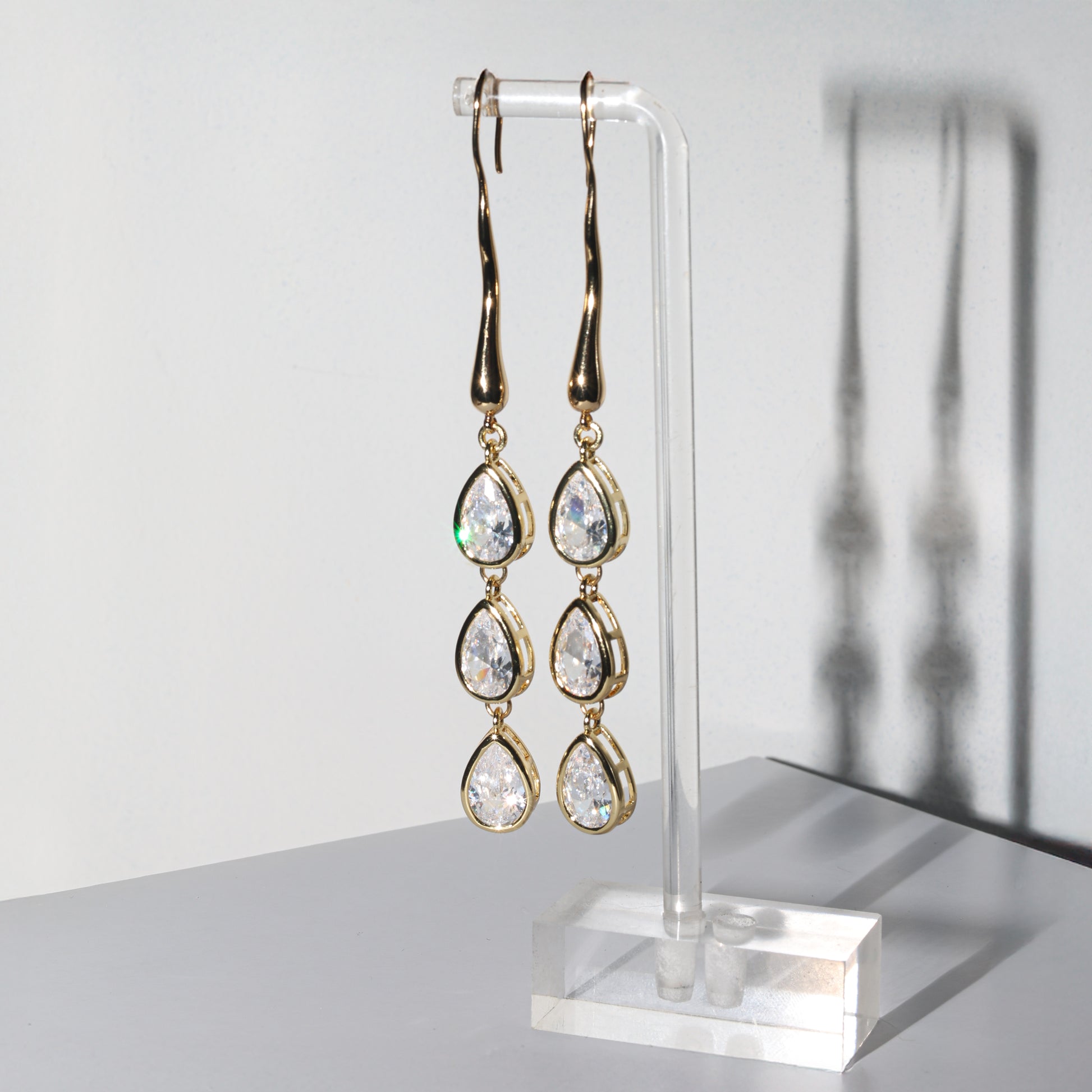- Pear-cut cubic zirconia drops (3 per earring)